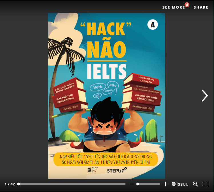 Bộ sách Hack Não IELTS gồm 2 quyển in màu trên giấy Nhật, kích thước A4, mỗi quyển lên tới hơn 400 trang, tương đương với 4 cuốn sách học thông thường. Bạn cũng có thể so sánh sách như một bộ gồm 50 cuốn truyện tranh, vừa giúp bạn có đủ vốn từ vựng trung cấp, lại vừa để đọc giải trí hàng ngày.